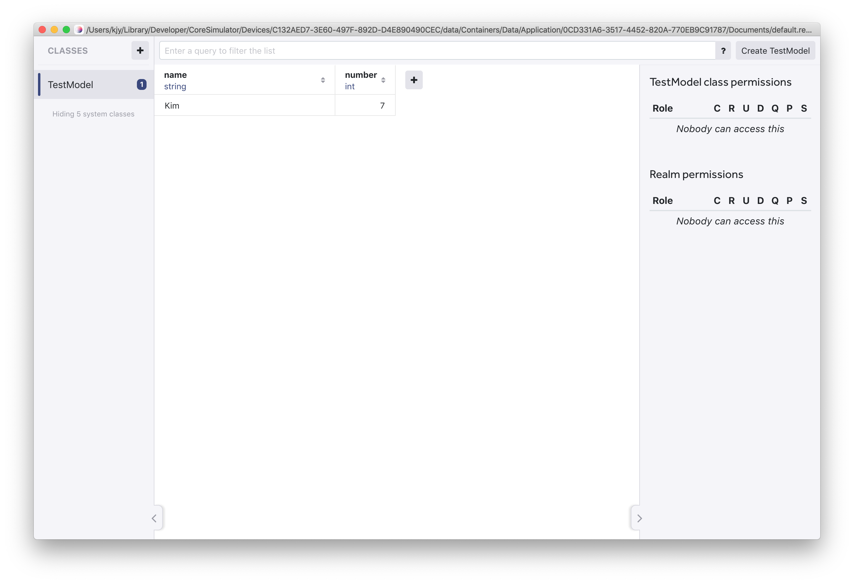 class TestModel: Object { // TestModel 모델을 작성합니다.