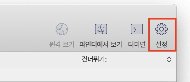 1. 소스트리 우측 상단에 설정 버튼을 선택합니다.