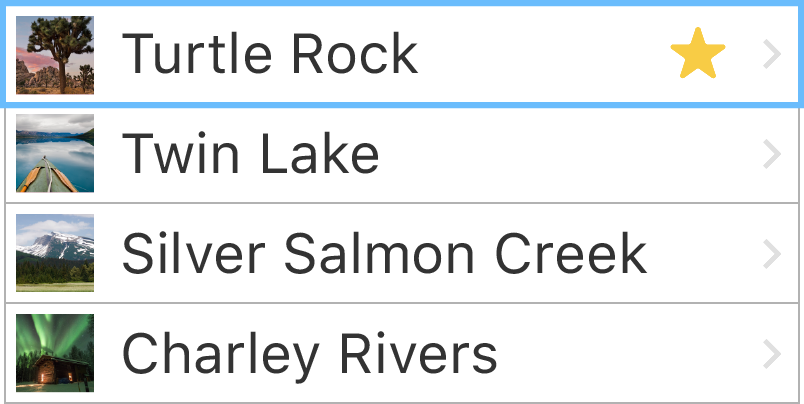 The star is present whenever a landmark’s isFavorite property is true. You’ll see how to modify that property later in this tutorial.