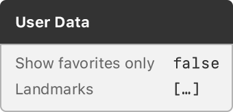 미리보기를 사용하지 않고 시뮬레이터 또는 디바이스에서 랜드 마크를 빌드하고 실행하는 경우 이것은 LandmarkList가 UserData 오브젝트를 갖도록합니다.