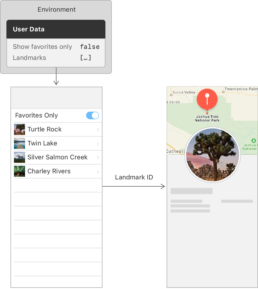 To prepare for the user to control which particular landmarks are favorites, you’ll first store the landmark data in a observable object.