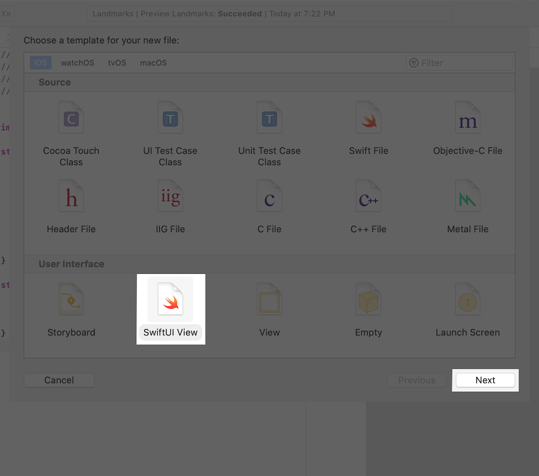 Choose File > New > File, then select SwiftUI View from the iOS Templates sheet. Click Next to continue, then enter Badge in the Save As field and click Create.