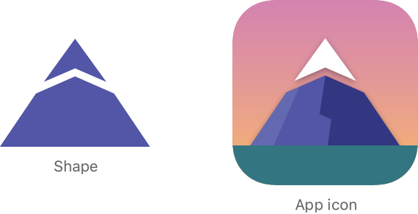 뱃지 디자인에서 회전 된 패턴으로 찍힌 산 모양에 대해 BadgeSymbol이라는 새 사용자 정의 뷰를 만듭니다.