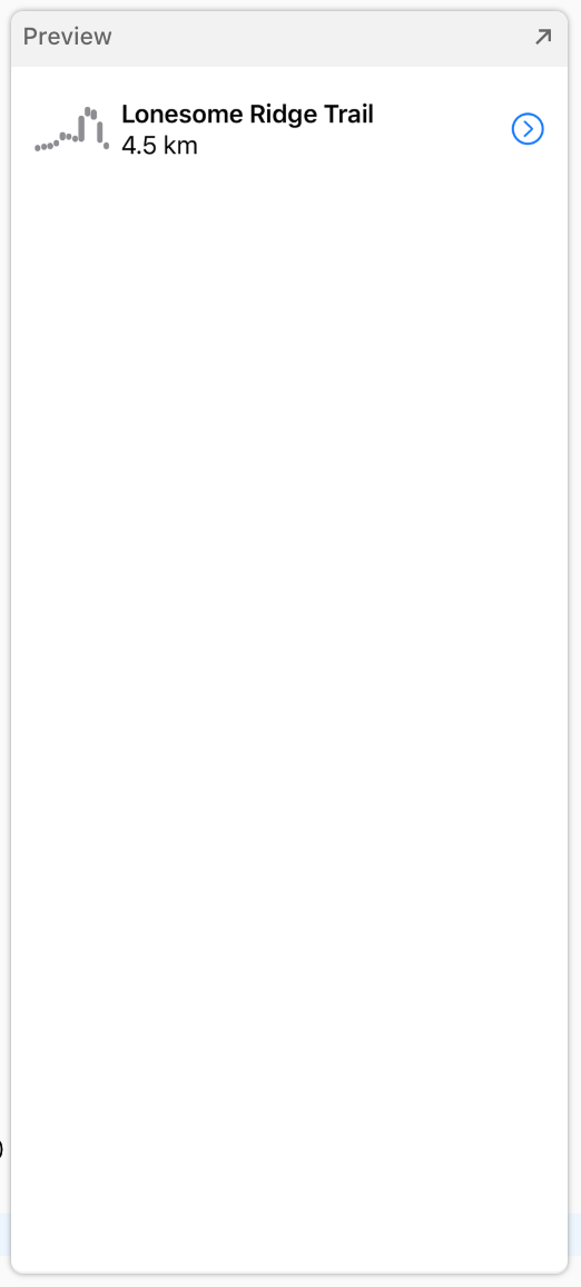 HikeView.swift에서 미리보기를 켜보세요 그리고 우측 상단 화살표 버튼을 눌러서 그래프가 감춰졌다가 나타나는 모습을 테스트해보세요.