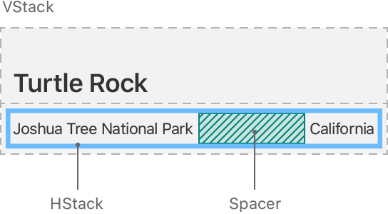 디바이스의 전체 가로 너비를 사용하려면 두 개의 텍스트뷰를 포함하는 수평 스택에 스페이서를 추가하여 공원과 주소를 분리할 수 있습니다.