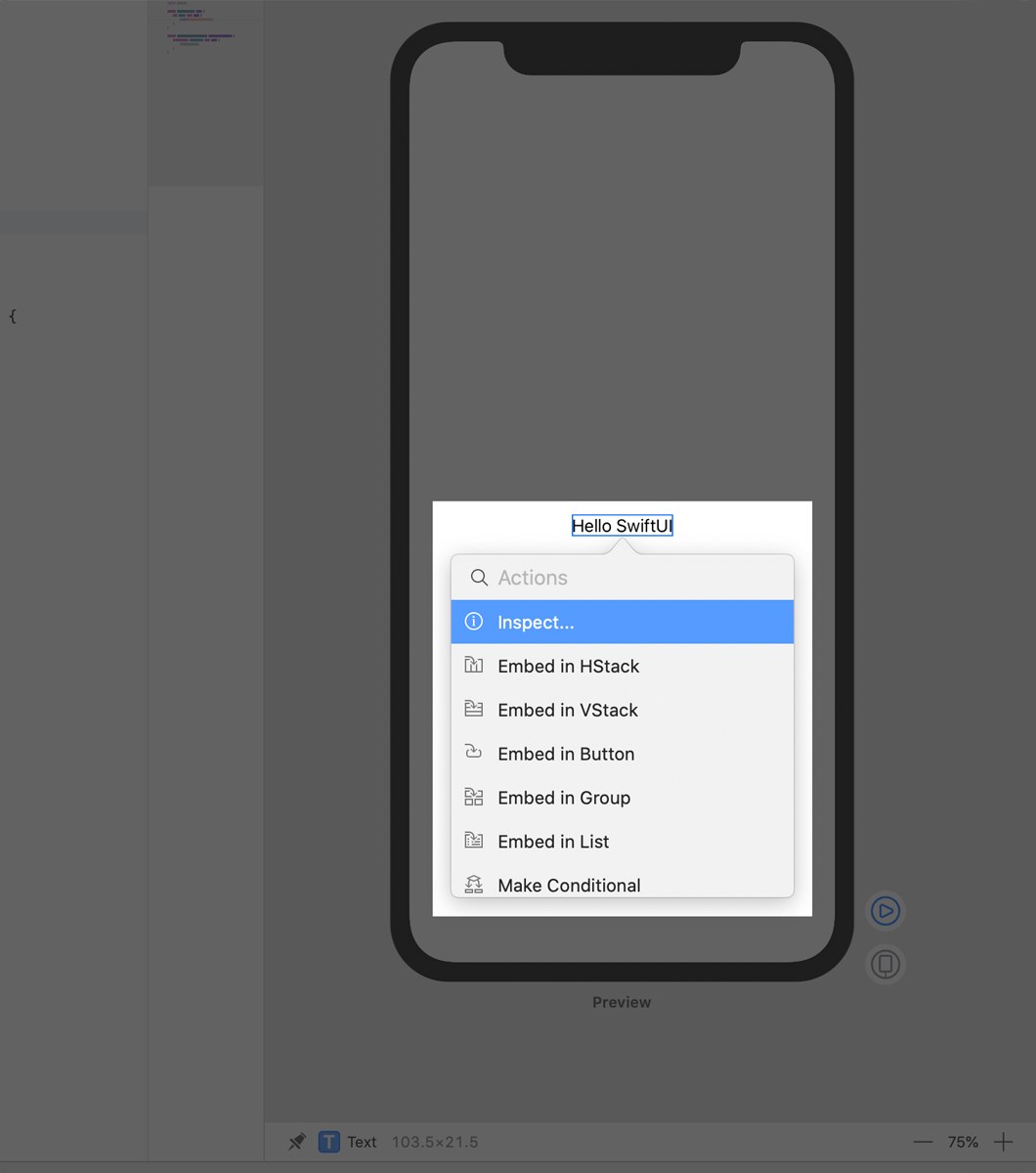 You can use Xcode’s structured editing support to embed a view in a container view, open an inspector, or help with other useful changes.
