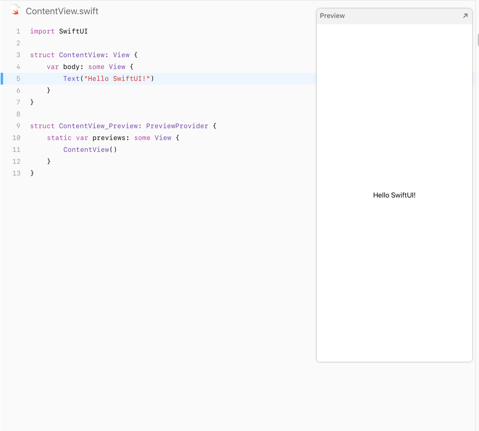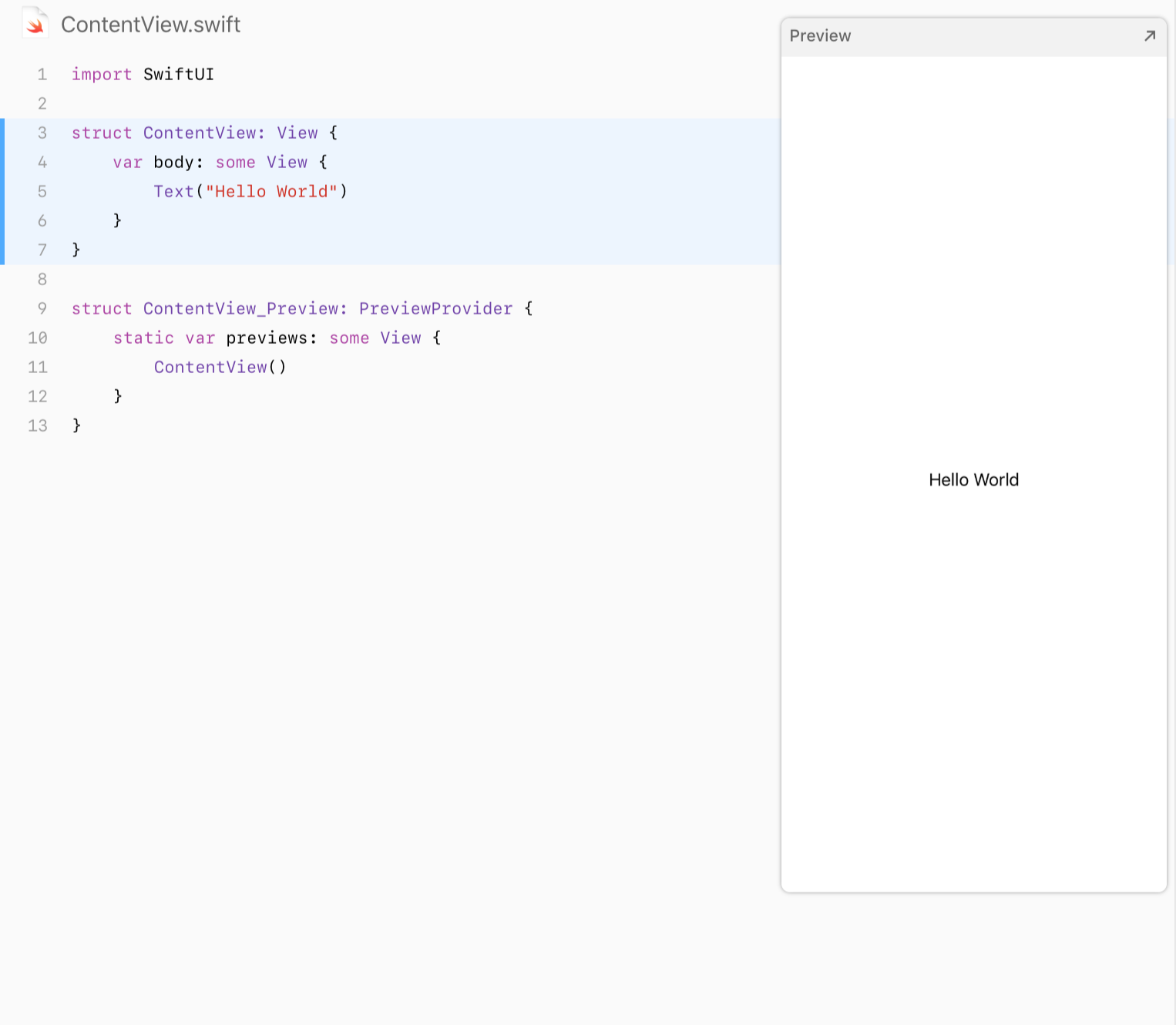 By default, SwiftUI view files declare two structures. The first structure conforms to the View protocol and describes the view’s content and layout. The second structure declares a preview for that view.
