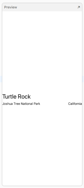 Add a new text view after the location, change the placeholder text to the park’s state, and then set its font to subheadline.