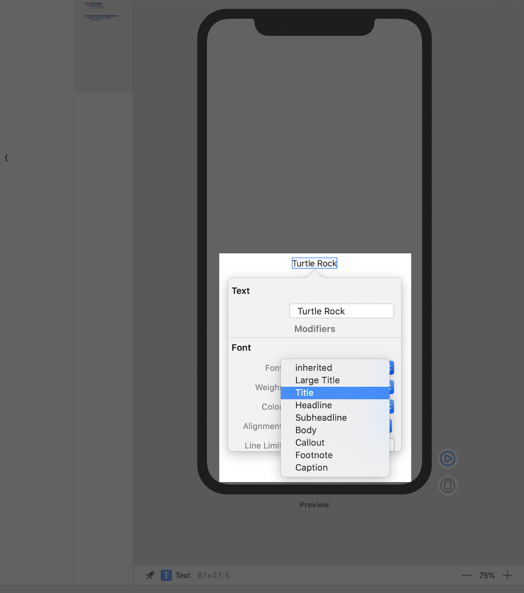 As you change the code in a view’s body property, the preview updates to reflect your changes.