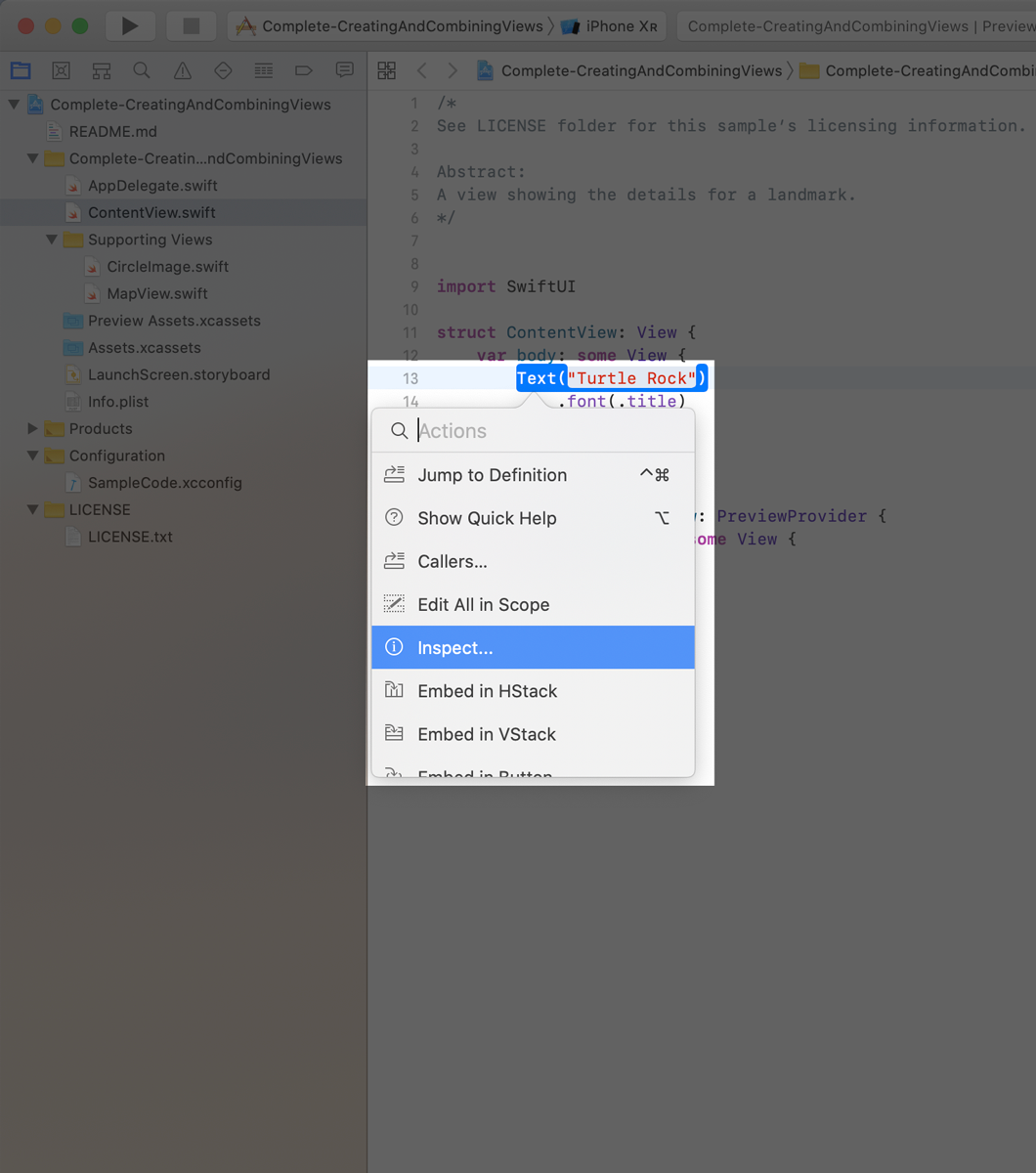 In the Project navigator, click to select ContentView.swift.