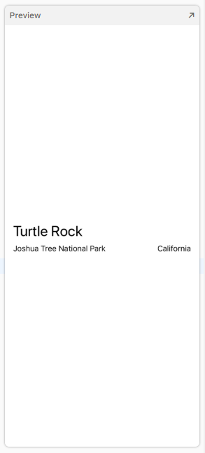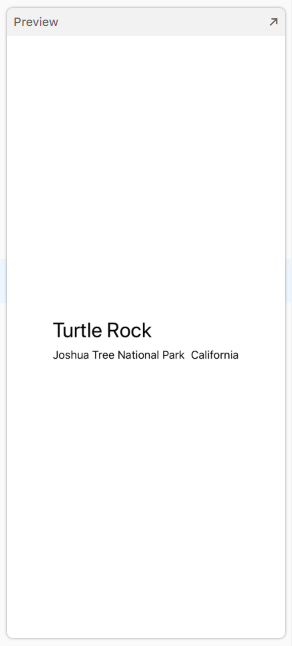 Add a new text view after the location, change the placeholder text to the park’s state, and then set its font to subheadline.