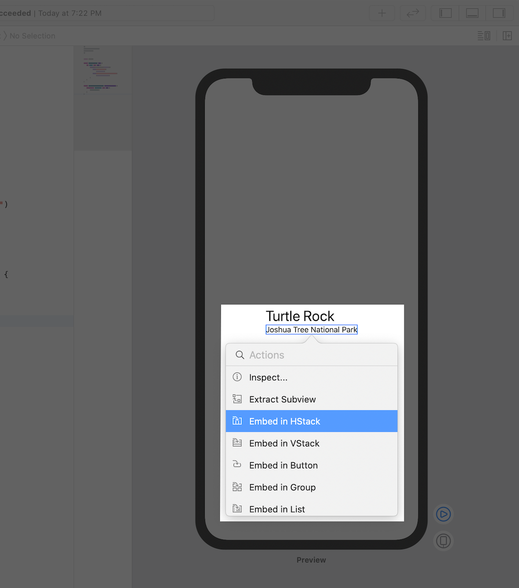 In the canvas, Command-click on Joshua Tree National Park, and choose Embed in HStack.