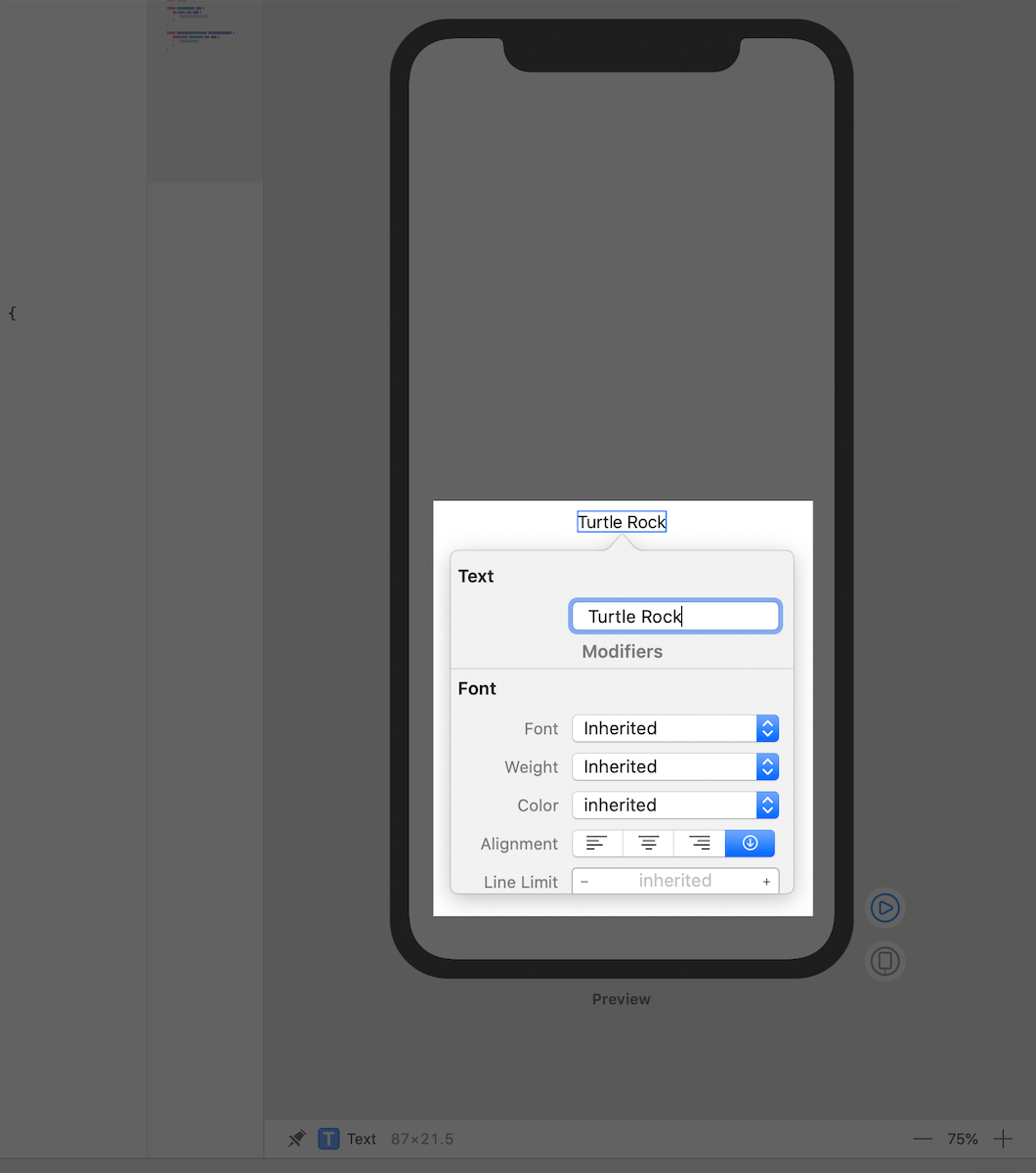 As you change the code in a view’s body property, the preview updates to reflect your changes.